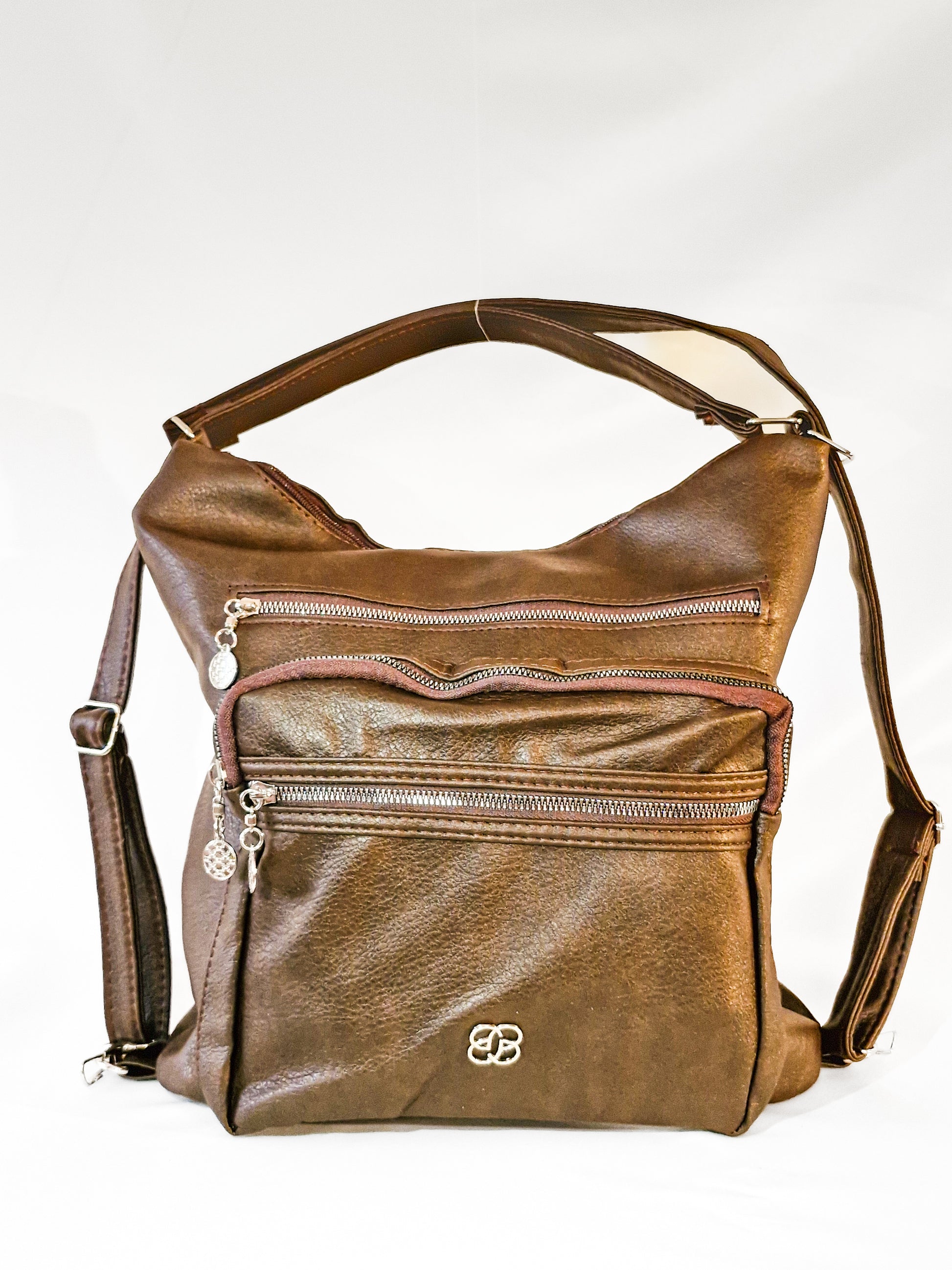Kahve Rengi 4 Bölmeli El, Omuz ve Sırt Çantası. Astarlı. Günlük Kullanıma Uygun.